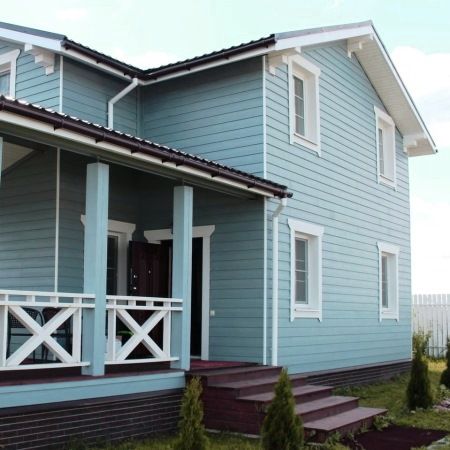 Фибросайдинг применяется в качестве декоративного материала для отделки фасада дома и придания эстетического вида ограждениям, заборам, баням, беседкам и другим постройкам.