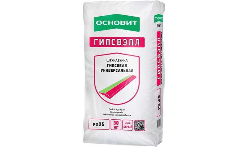 Гипсовая штукатурка серая ОСНОВИТ ГИПСВЭЛЛ PG25 предназначена для выравнивания стен и потолков в помещениях с нормальной влажностью.