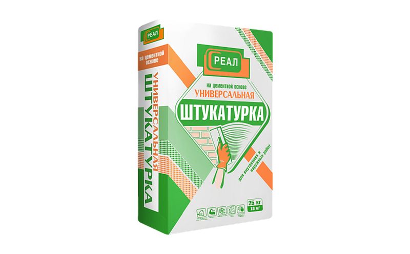 Сухая строительная штукатурная смесь РЕАЛ на цементной основе. Предназначена для выравнивания поверхностей стен из бетона, газобетона, кирпича при выполнении наружных и внутренних ремонтно-строительных работ. Штукатурка РЕАЛ применяется для ручного и машинного нанесения.